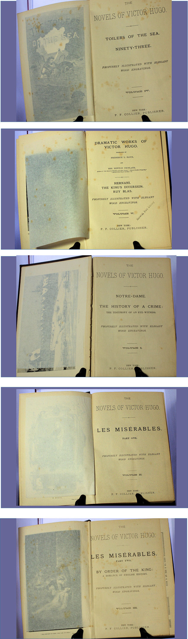 Les Misérables, Toilers of the sea. Ninety-three. Hermani, The King diversion. Ruy Blas. Notre Dame.