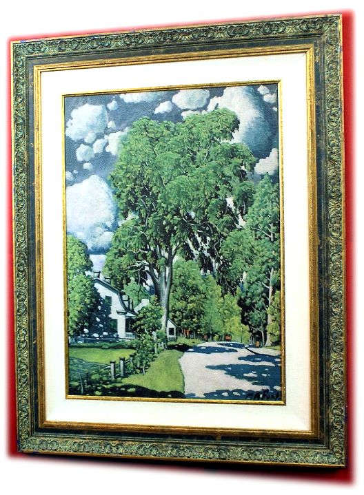 Canvas 14 x 19 inch - 1990's Frame 20.75 x 20.5 inch - Wood- green & gold paint