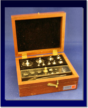 Cenco analytical instruments. Wood box, 1mm to 100 gram